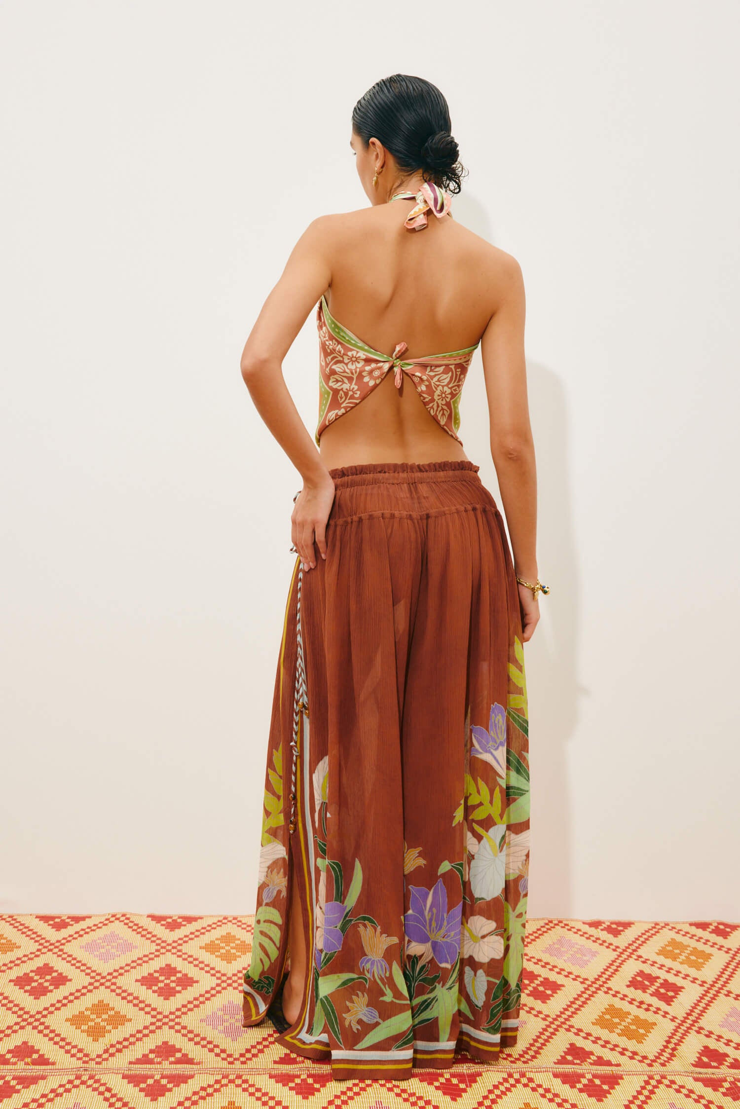 Silk scarf designed for versatile styling. Large enough to be worn traditionally or wrapped as a top. Lightweight, fluid, and made from 100% silk.