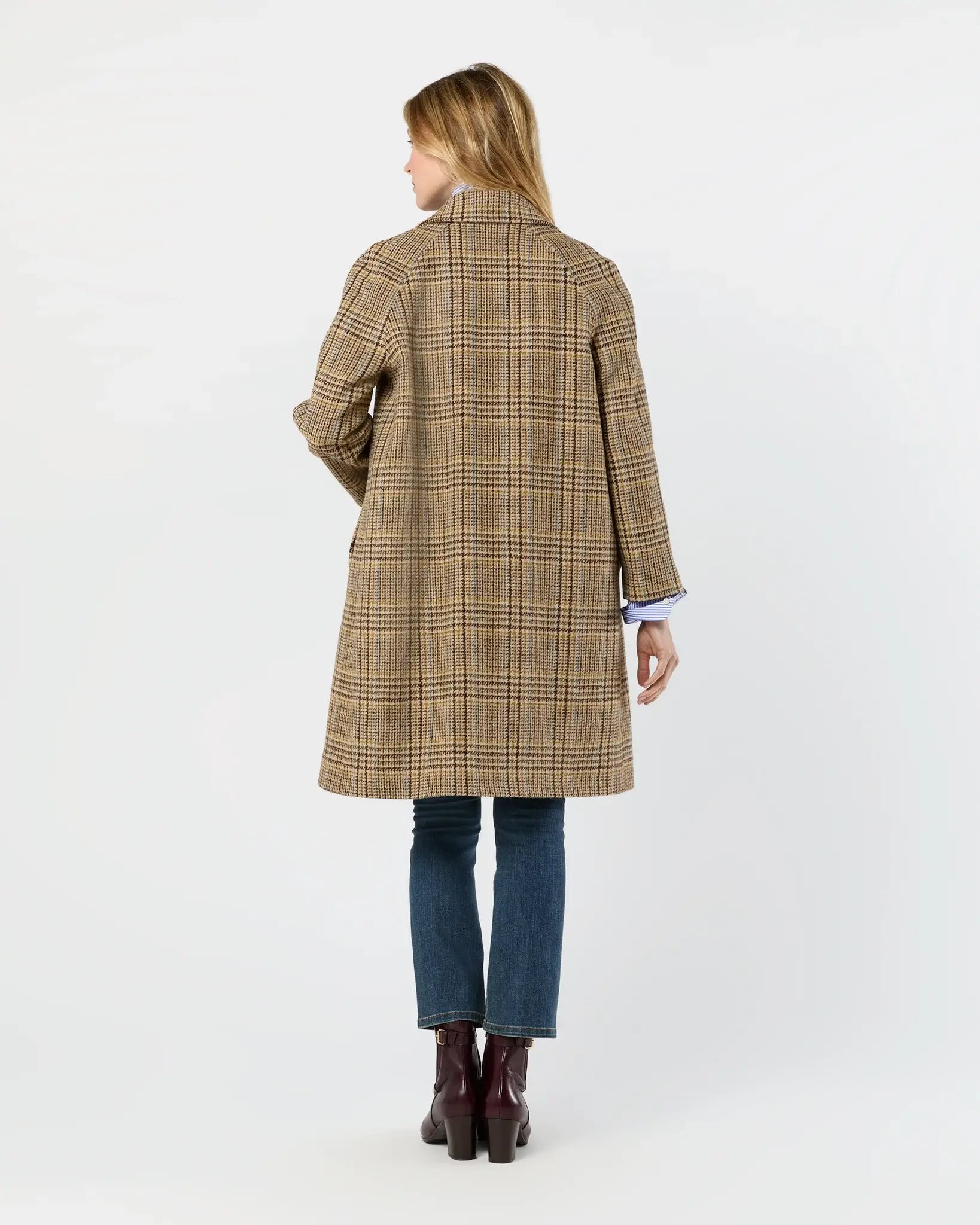 balmacaan coat- brown/sky glen plaid tweed