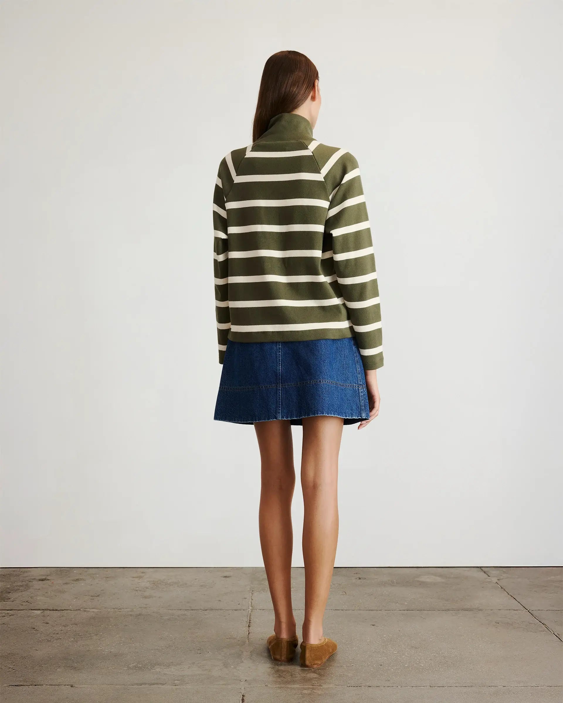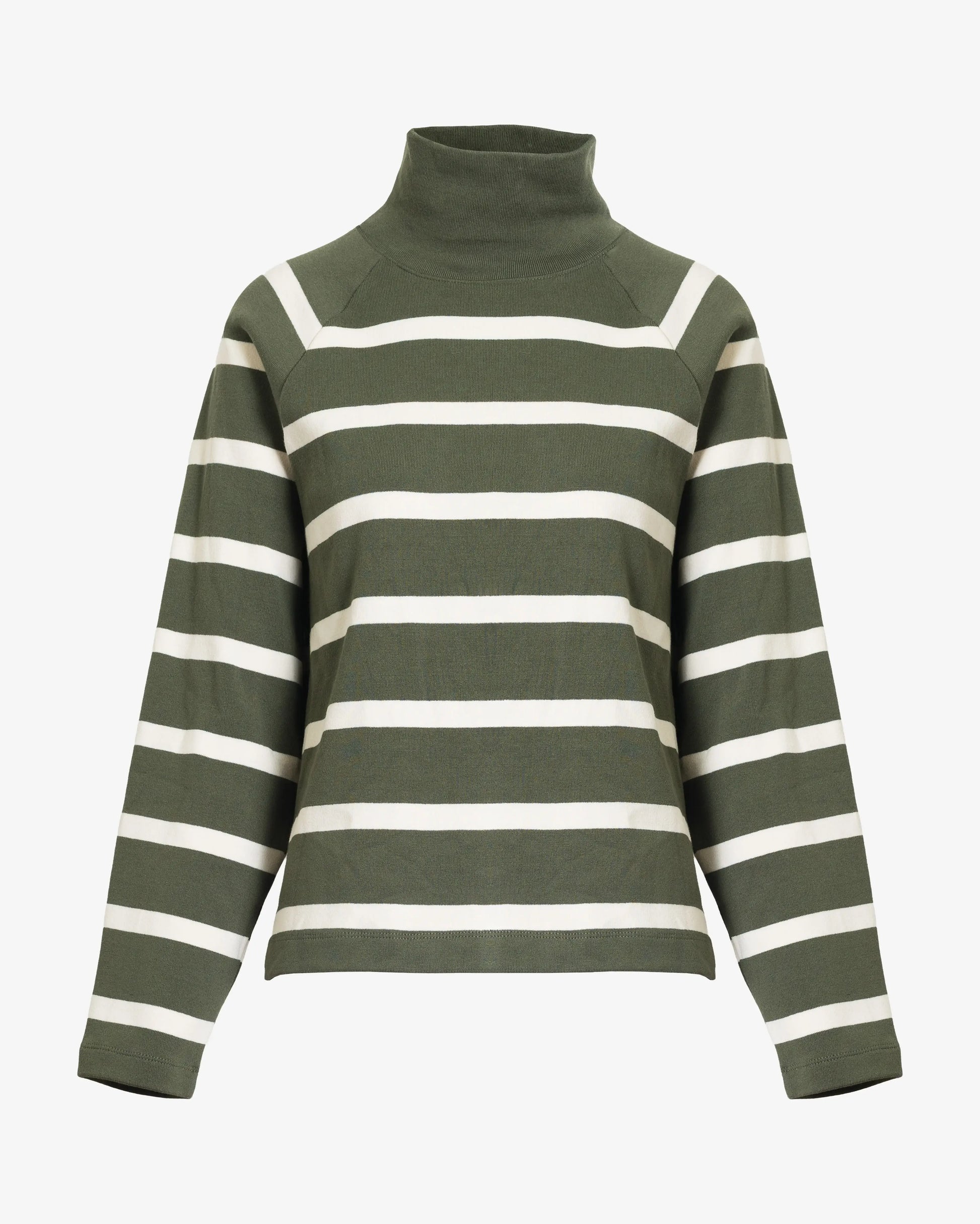 Relaxed fit pullover with ribbed turtleneck and long sleeves. Soft organic cotton rugby stripe with rib trim at neck. Fabric: 95% organic cotton, 5% elastane.