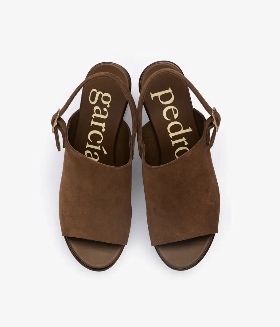 A cool mix of earthy textures and modern shape, the Daura sandal pairs raw-edge suede with a sculptural wood platform. The buckle strap keeps things secure, while the cushy anatomical insole makes them surprisingly easy to wear. A statement shoe that blends comfort, craft, and Pedro Garcia’s signature edge.