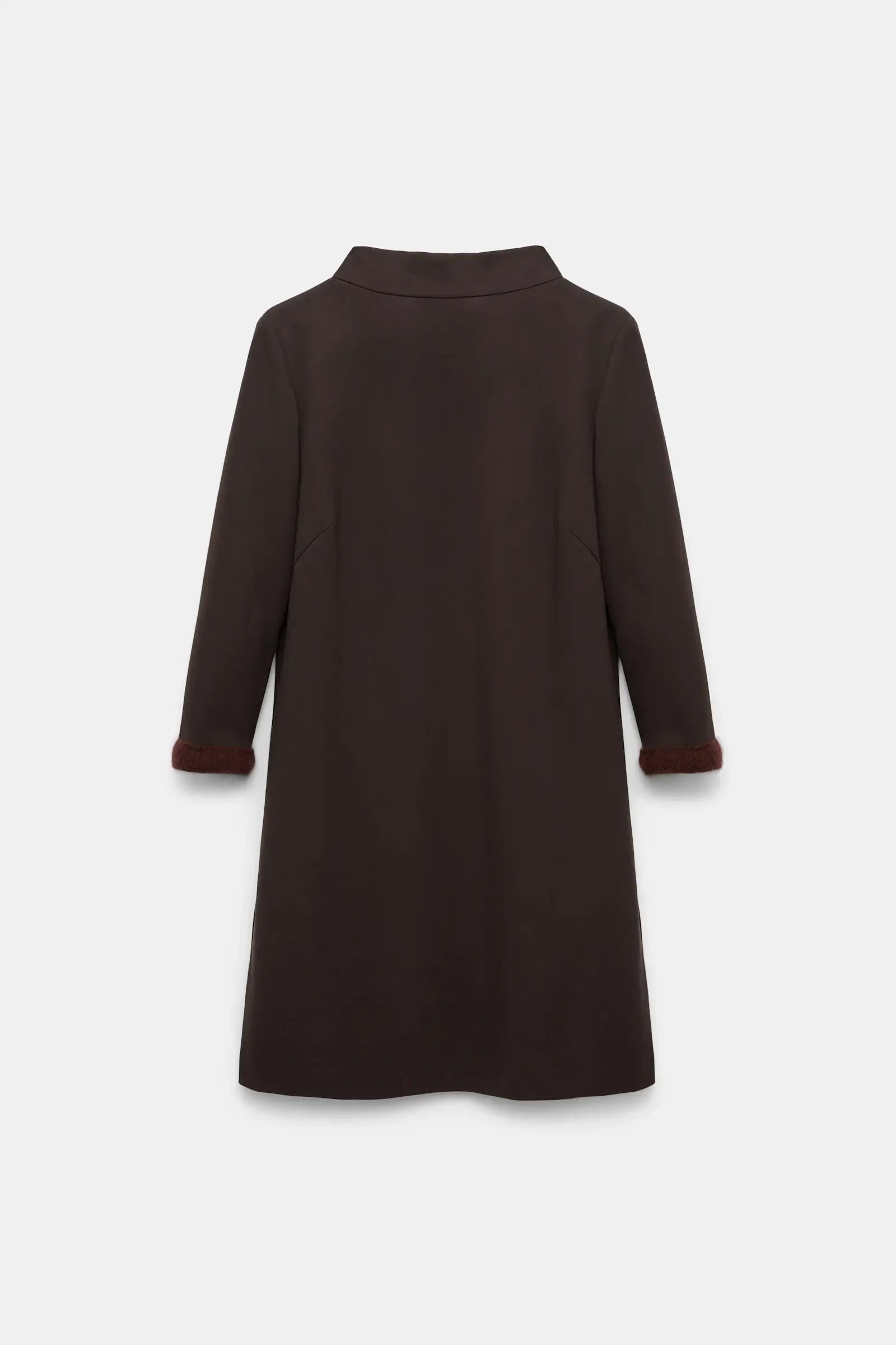 The shift dress is detailed in our forever favorite Punto Milano with tonal fluffy knit details. The dress has an A-line silhouette and 3/4 sleeves.