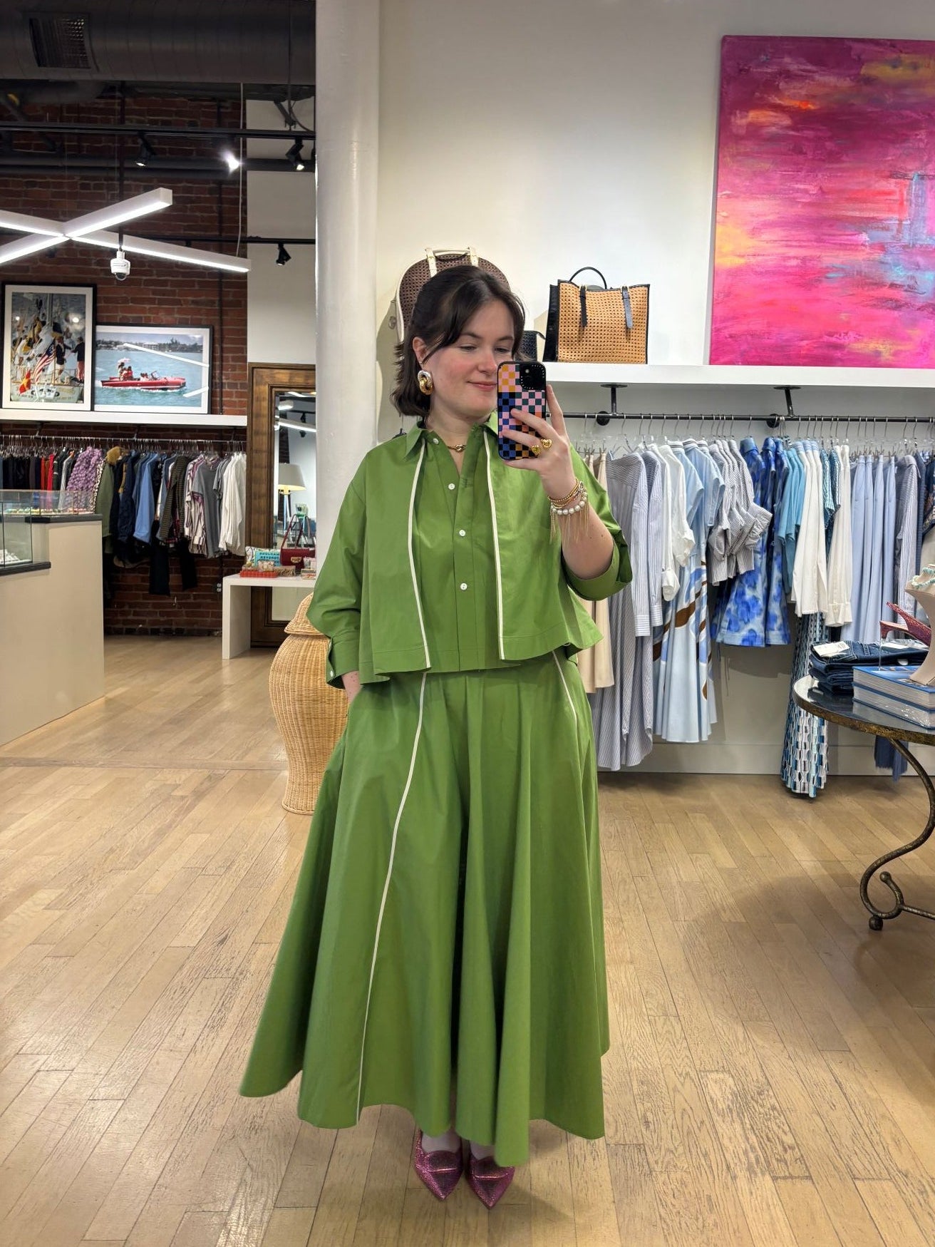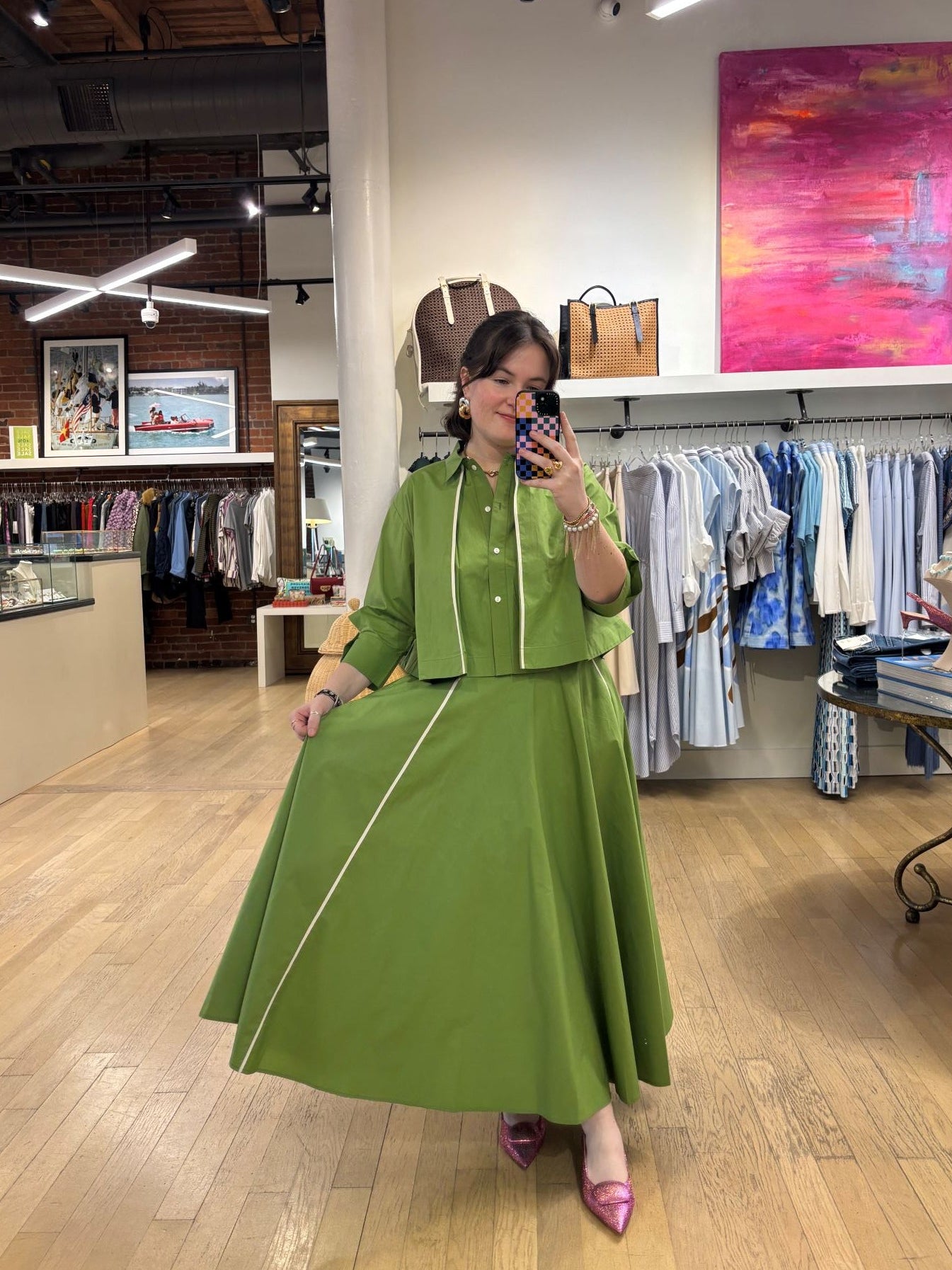 Clean, modern, and thoughtfully detailed, the Flux Shirt is an elevated take on an everyday essential. Crafted from crisp cotton, this cropped, collared silhouette features subtle white piping that adds a graphic edge. The A-line shape gives it an easy drape, while the 3/4-length sleeves with a chic elbow opening offer a detail that’s both functional and beautiful. It’s the kind of piece that feels intentional yet effortless—perfect worn on its own or styled as a set.