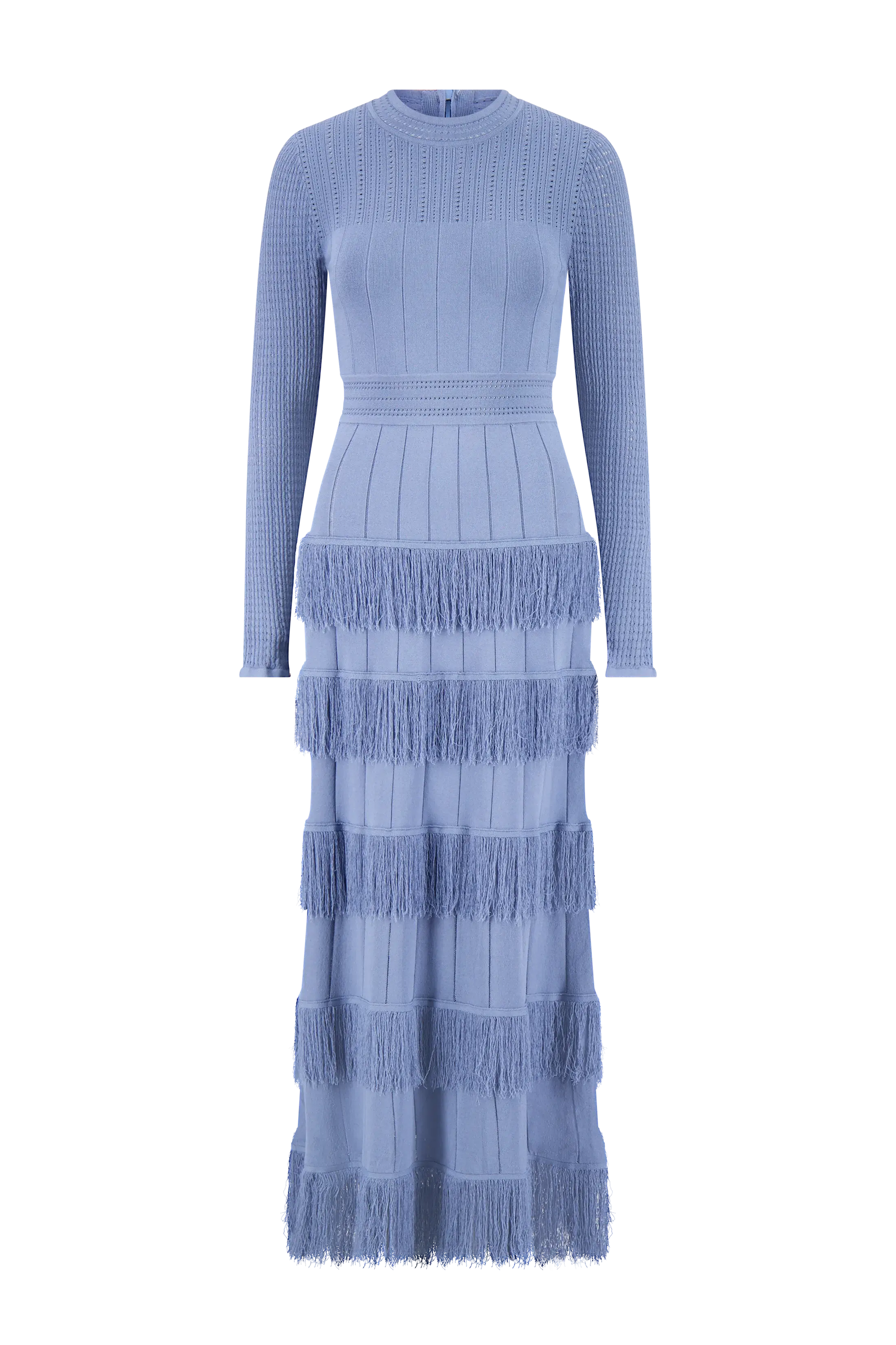 Crafted in a luxe knit fabrication, the Piper Dress features an easy fitted silhouette. A best seller year after year, this season's take on our classic knit dress features tiers of movement-forward fringe details and subtle openwork patterns inset into the knit. Effortless day-to-dinner defined.