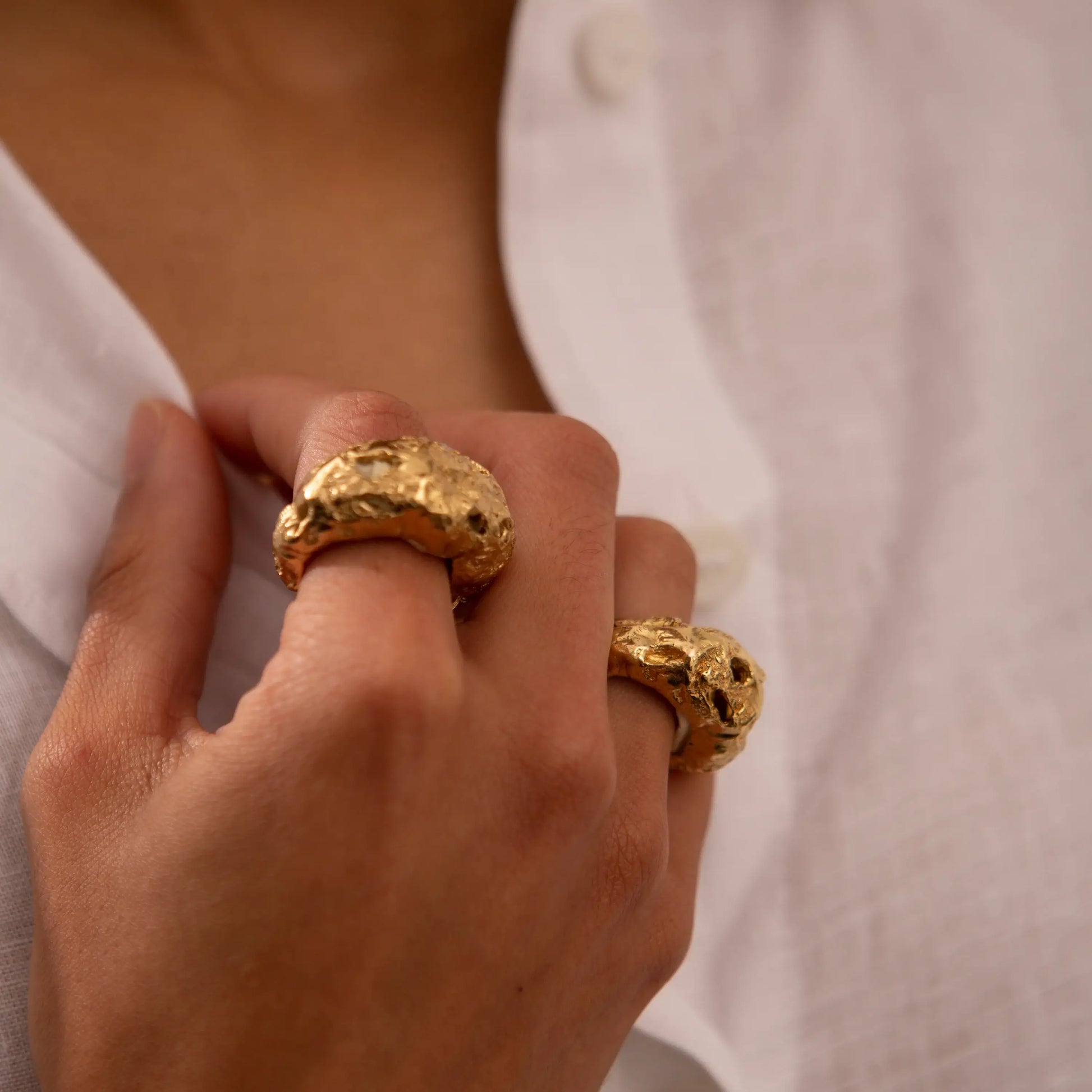 This textured handmade ring, crafted in 18kt gold plated pewter metal embrace the beauty of simplicity, perfect for adding a subtle yet stylish accent to your everyday wardrobe.