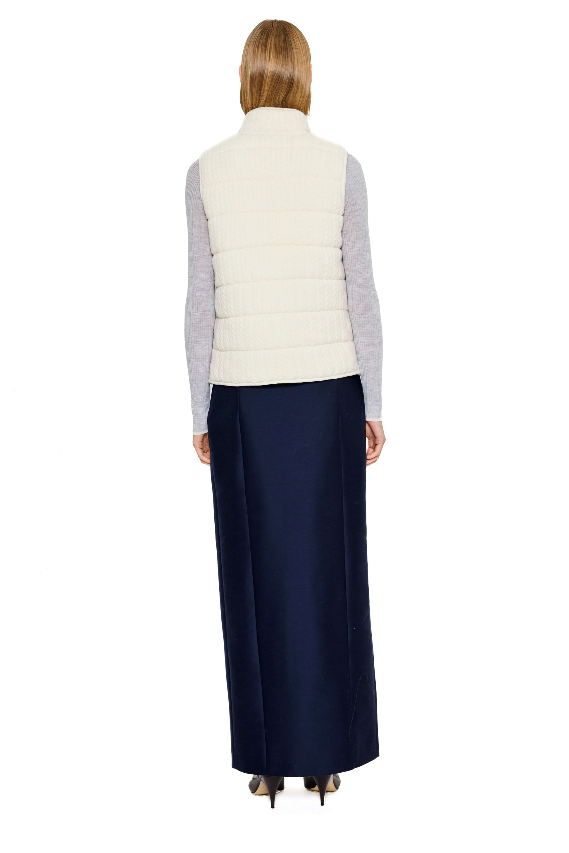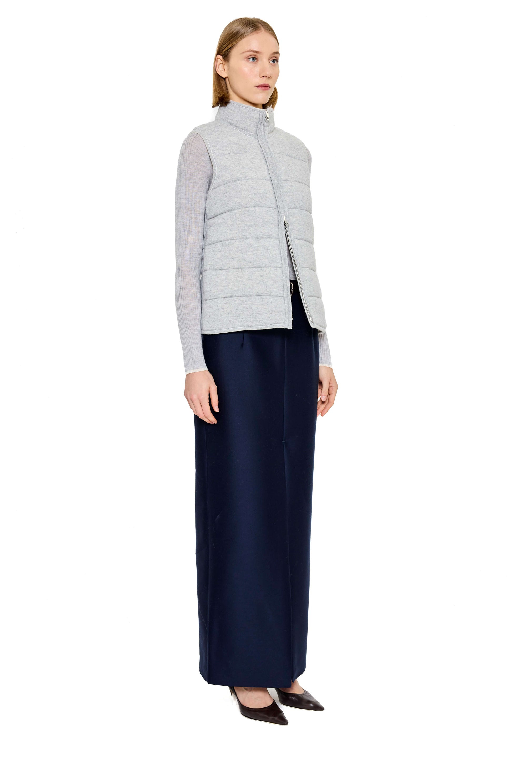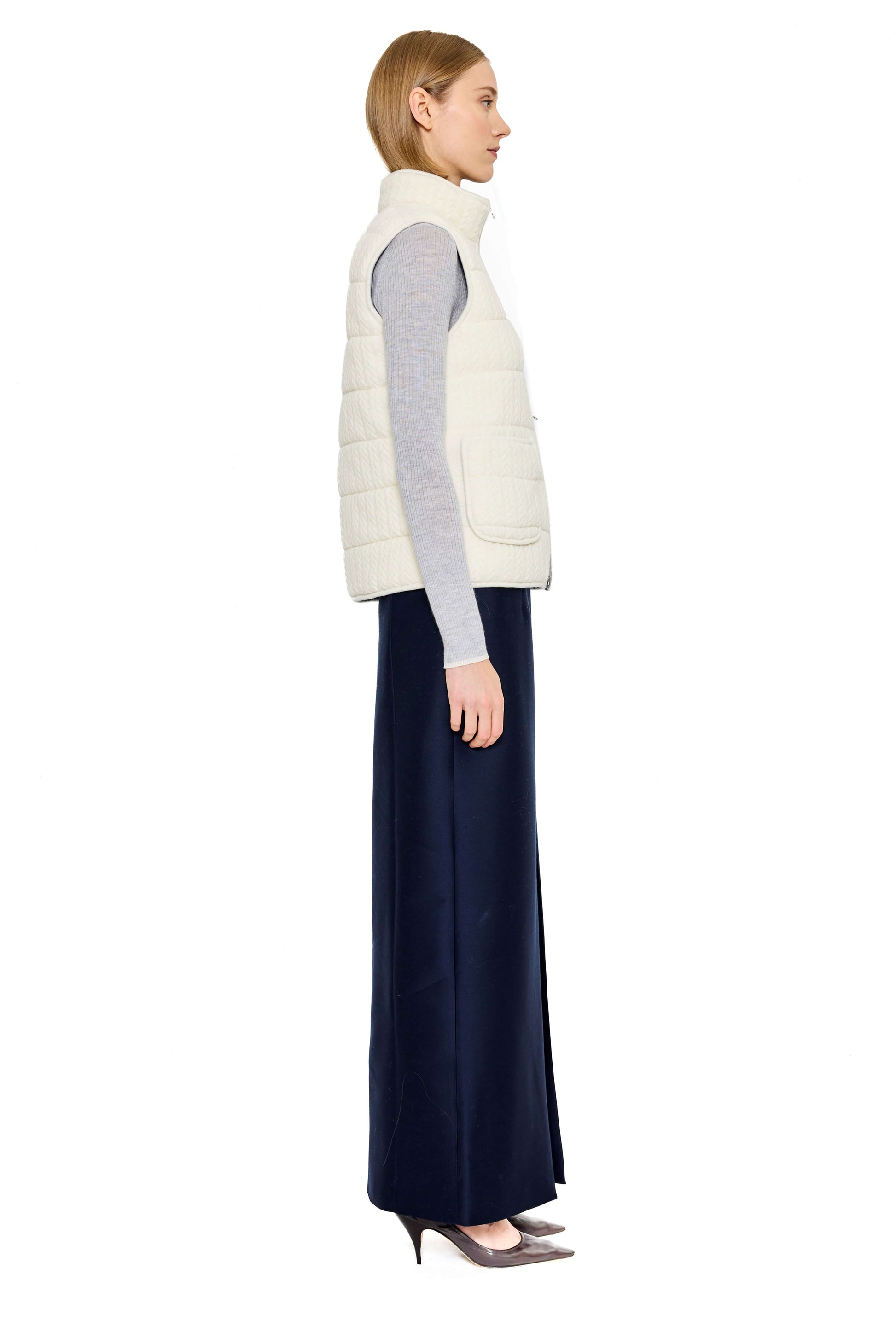 True to size fit. Reversible ivory-and-grey puffer vest with a modern, clean silhouette. Made from responsibly sourced baby goat cashmere, produced with care in Inner Mongolia.