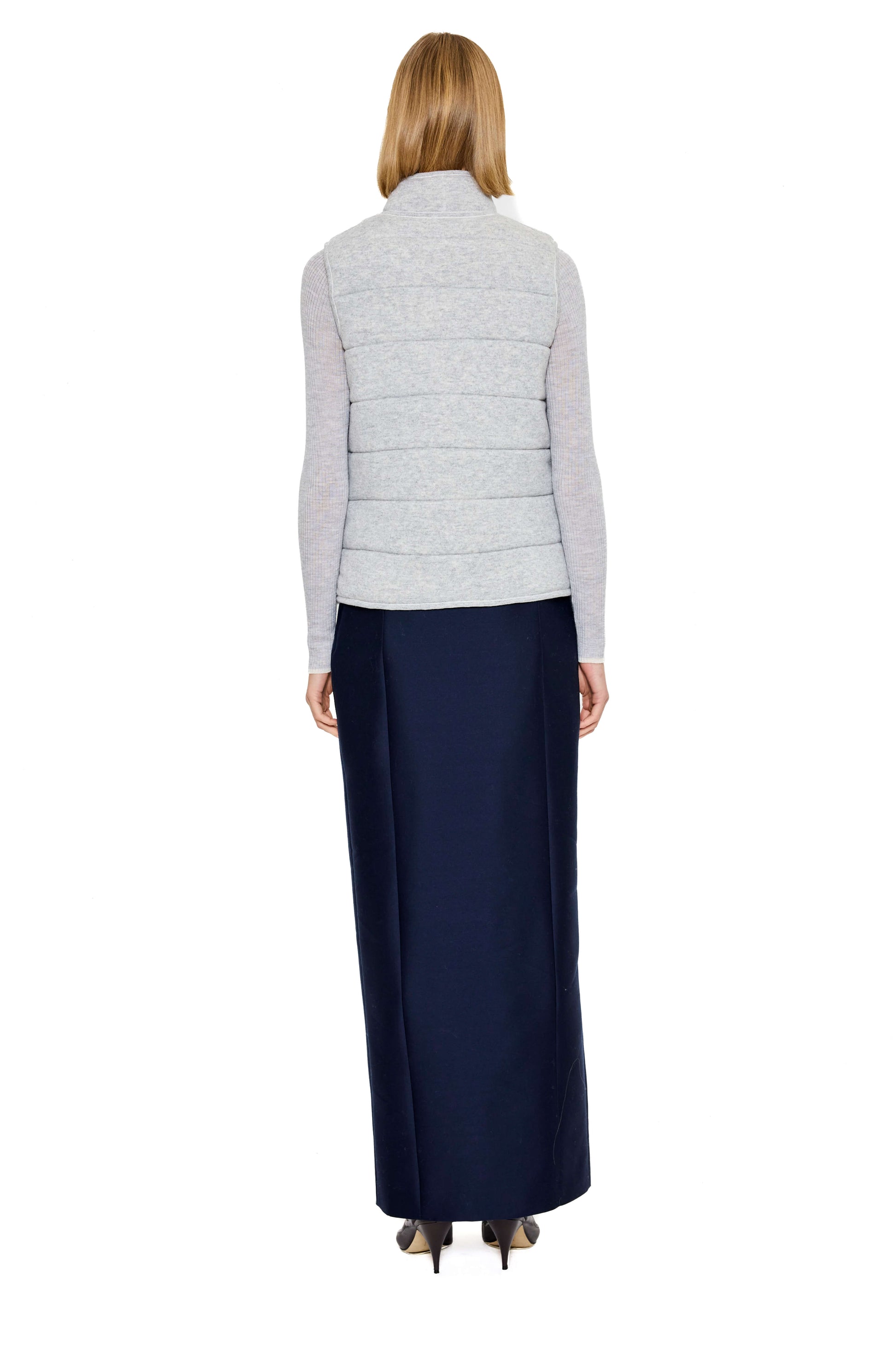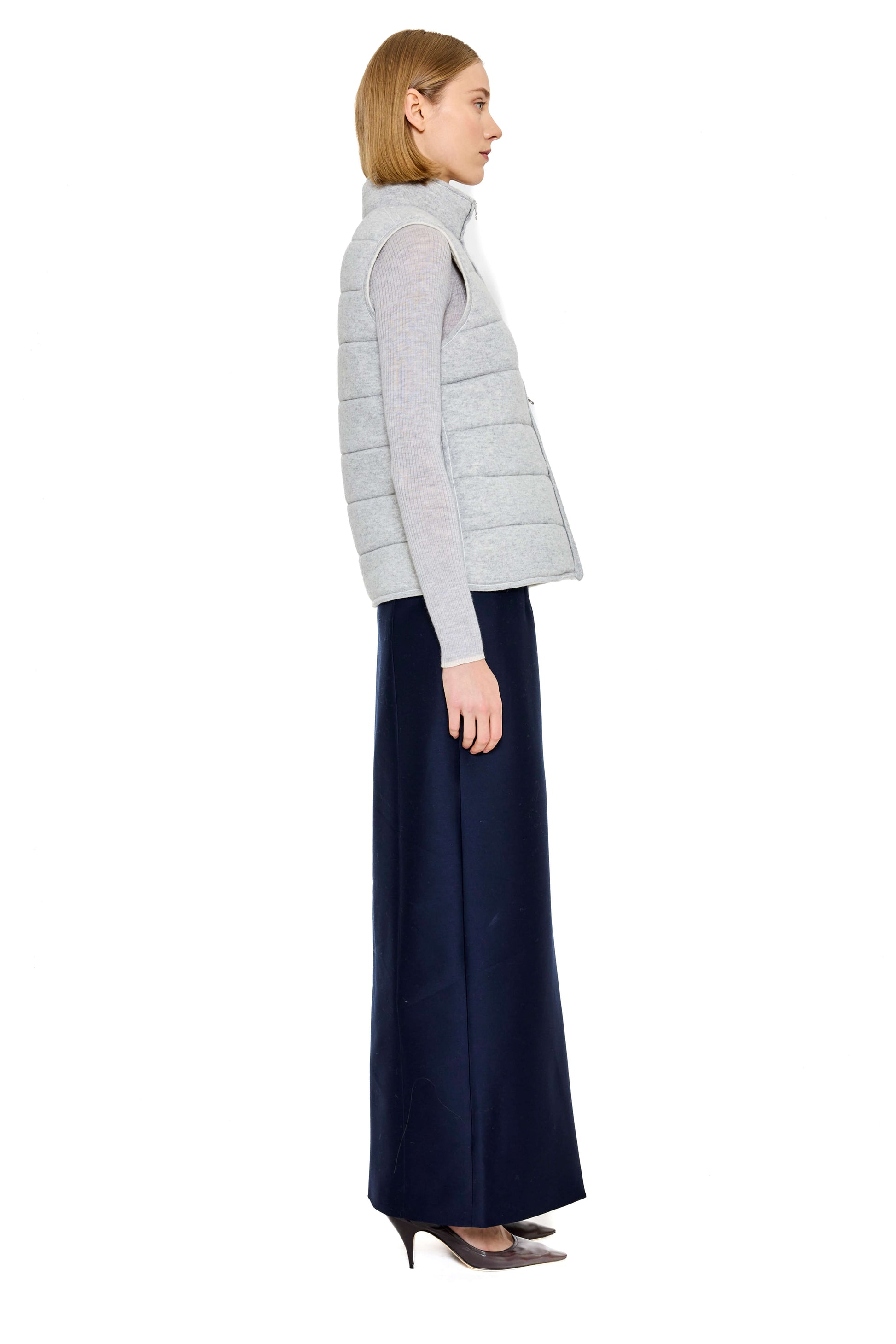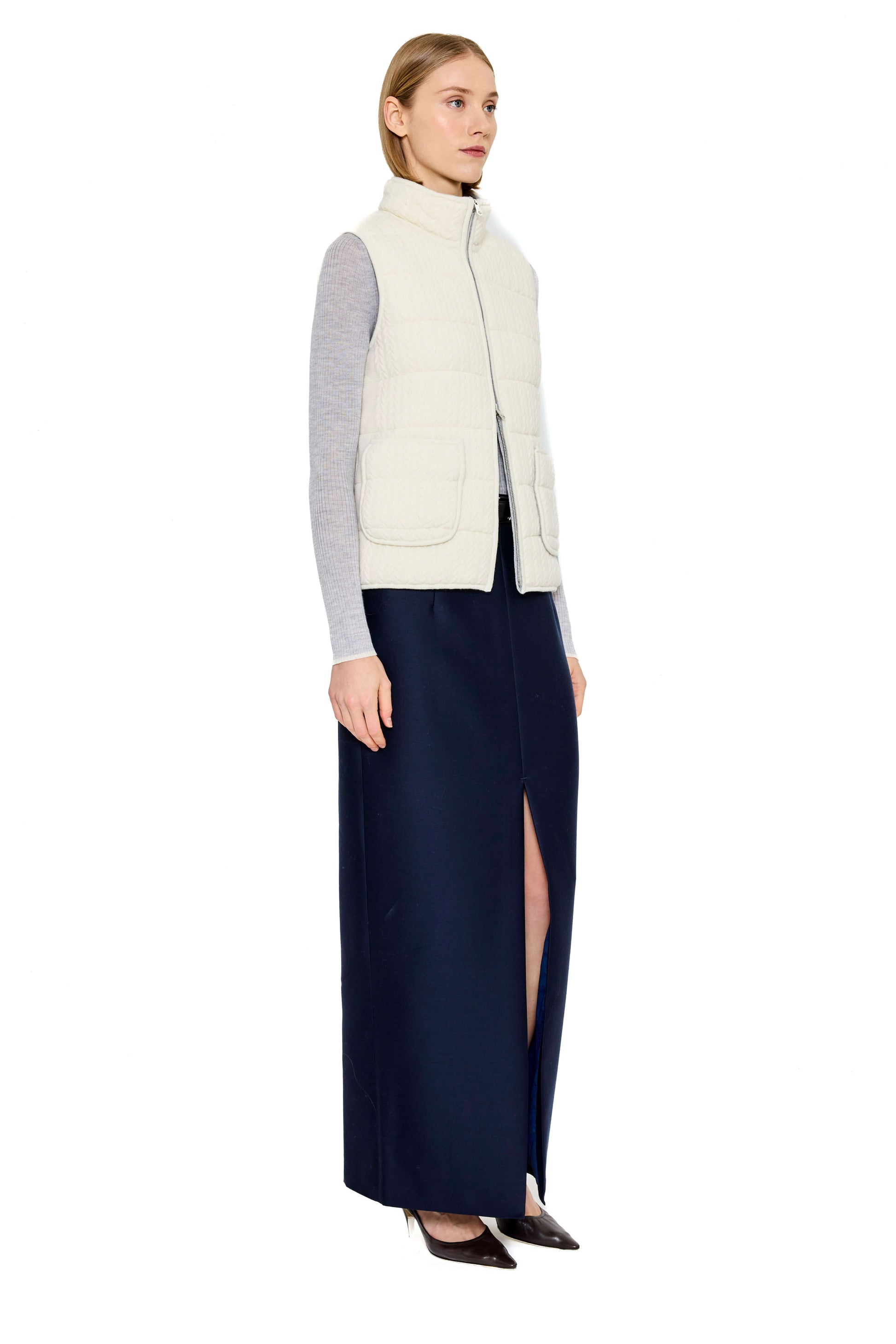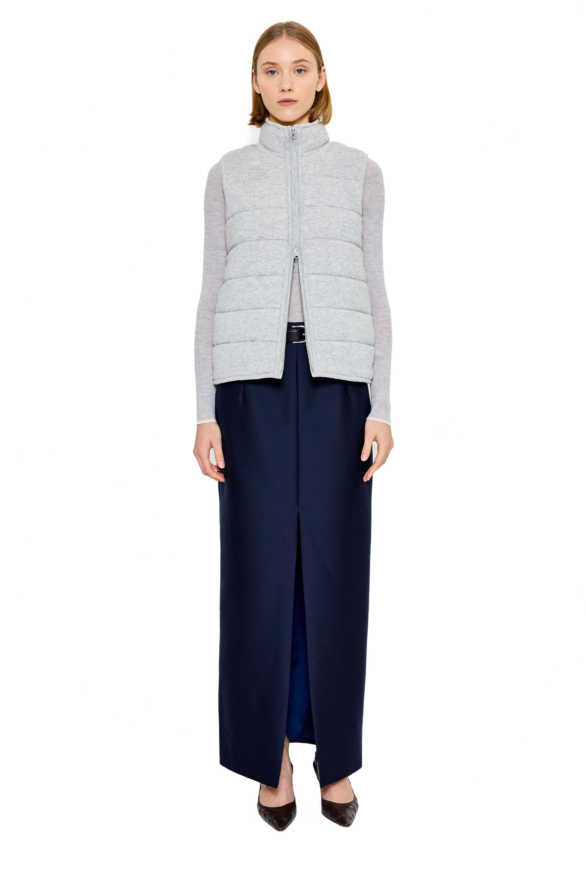 True to size fit. Reversible ivory-and-grey puffer vest with a modern, clean silhouette. Made from responsibly sourced baby goat cashmere, produced with care in Inner Mongolia.
