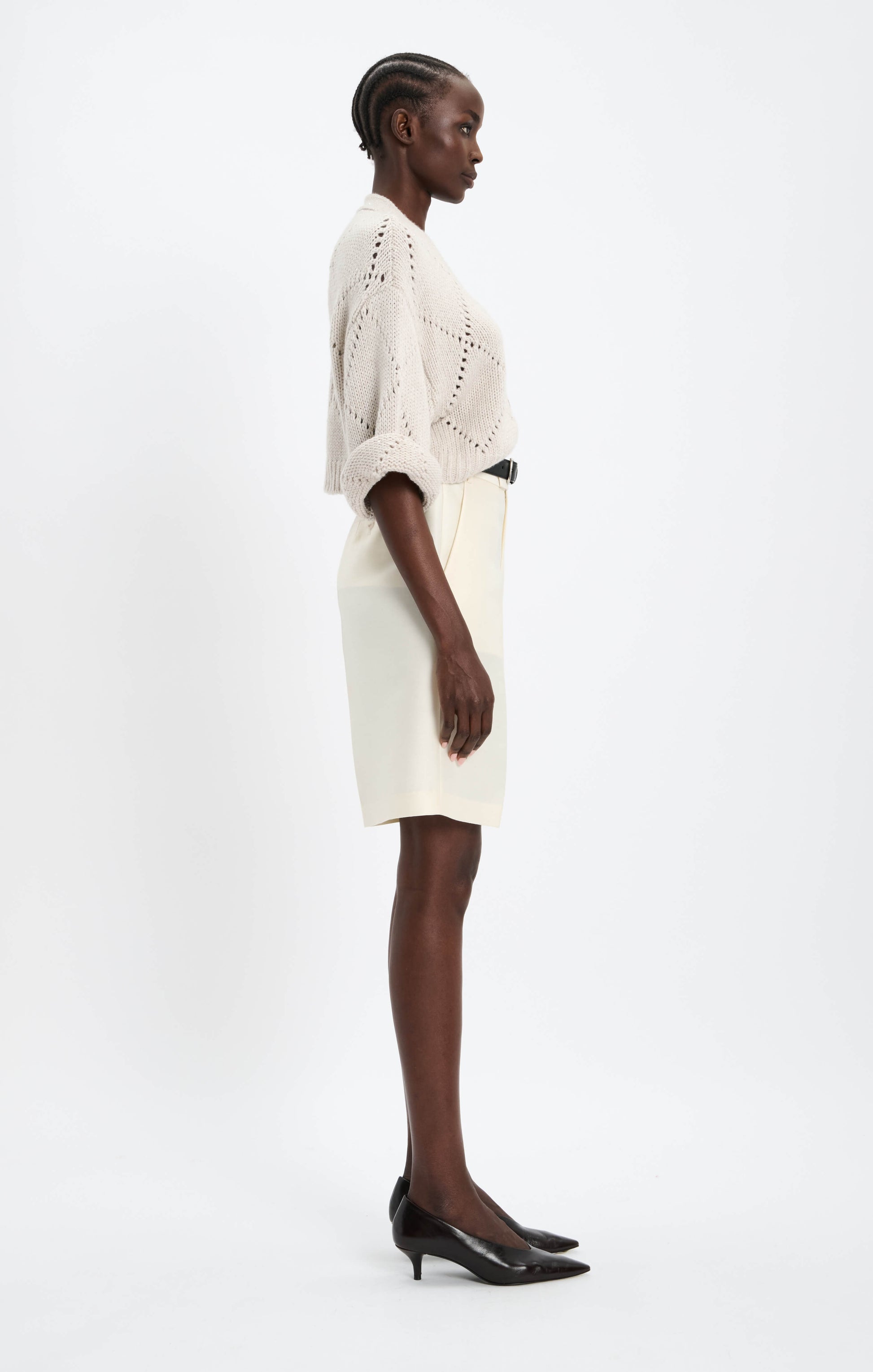 100% sustainable cashmere. Relaxed fit with 3/4-length sleeves and discreet sparkle detailing throughout. Lightweight, soft, and easy to layer.