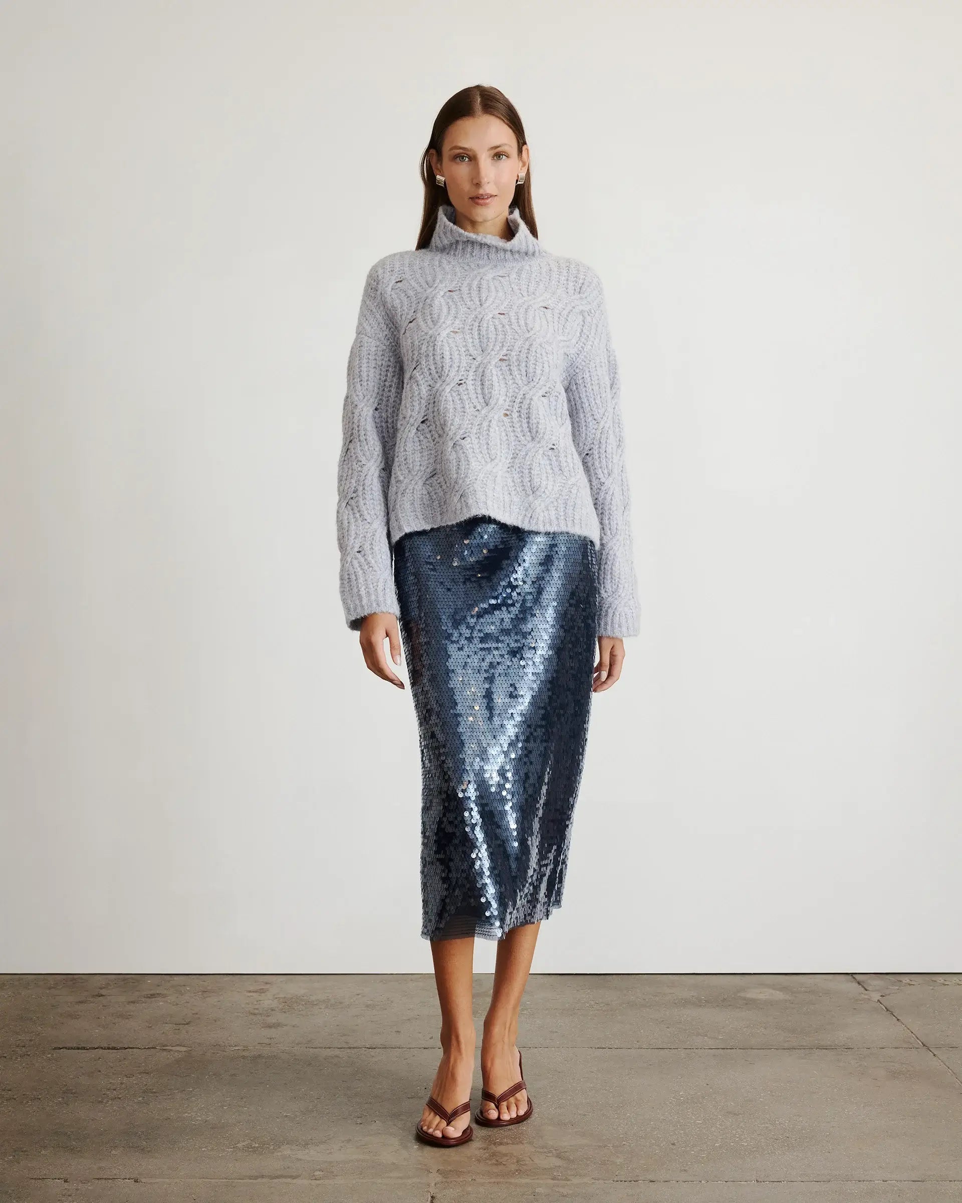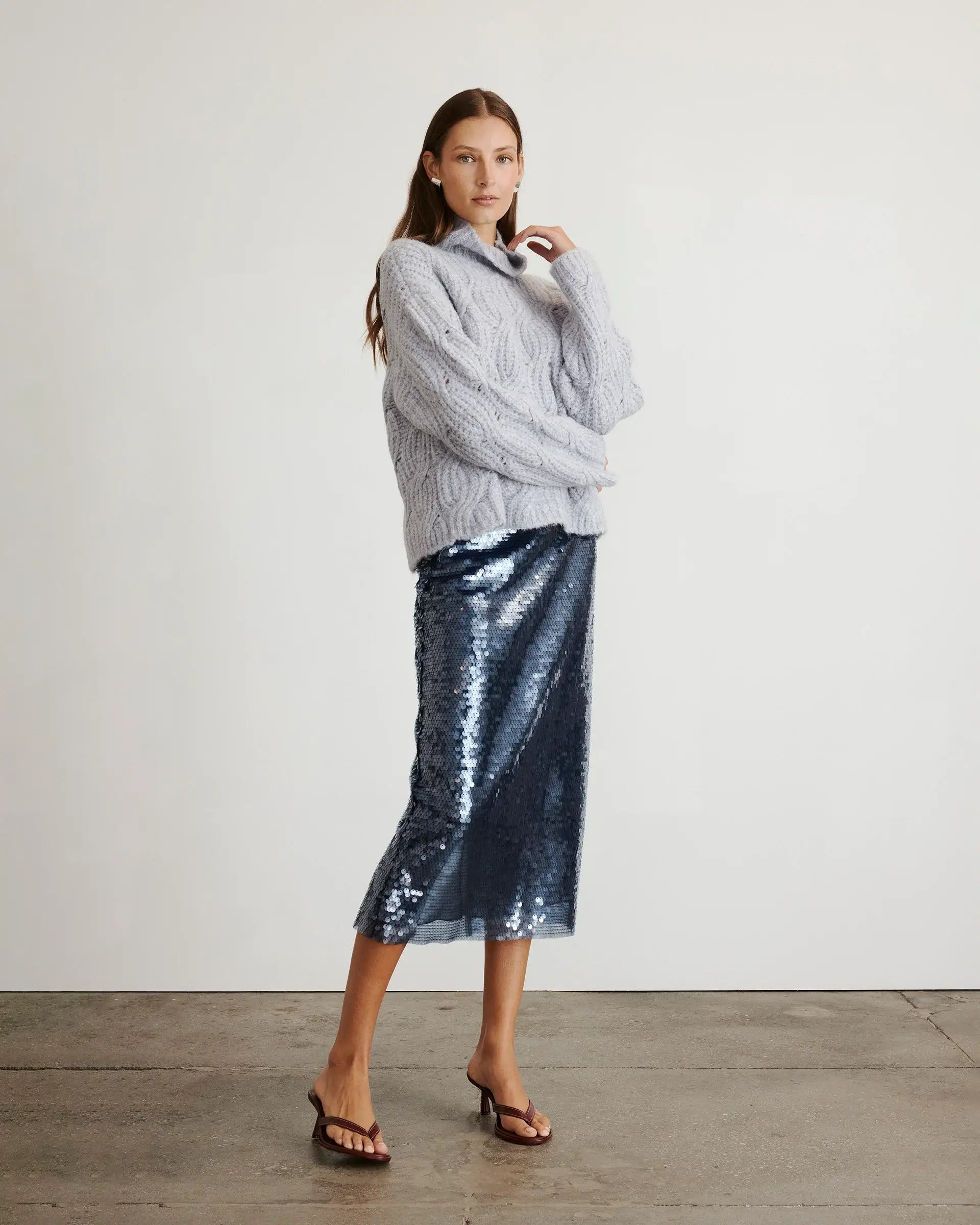 The Kiah Skirt by Tanya Taylor is a true statement piece, designed to take you seamlessly from day to night. With its high-waisted, straight fit and shimmering all-over sequins, it strikes the perfect balance of fun and sophistication. A back slit adds ease of movement, making this midi a standout choice for any occasion.