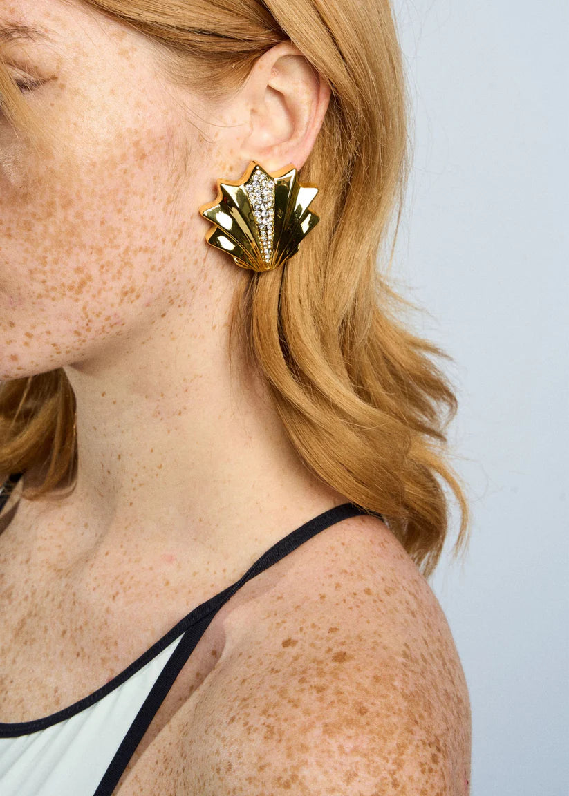 Vintage-inspired shell earrings rendered by hand and adorned with Swarovski crystals that adds a little extra oomph to any outfit.