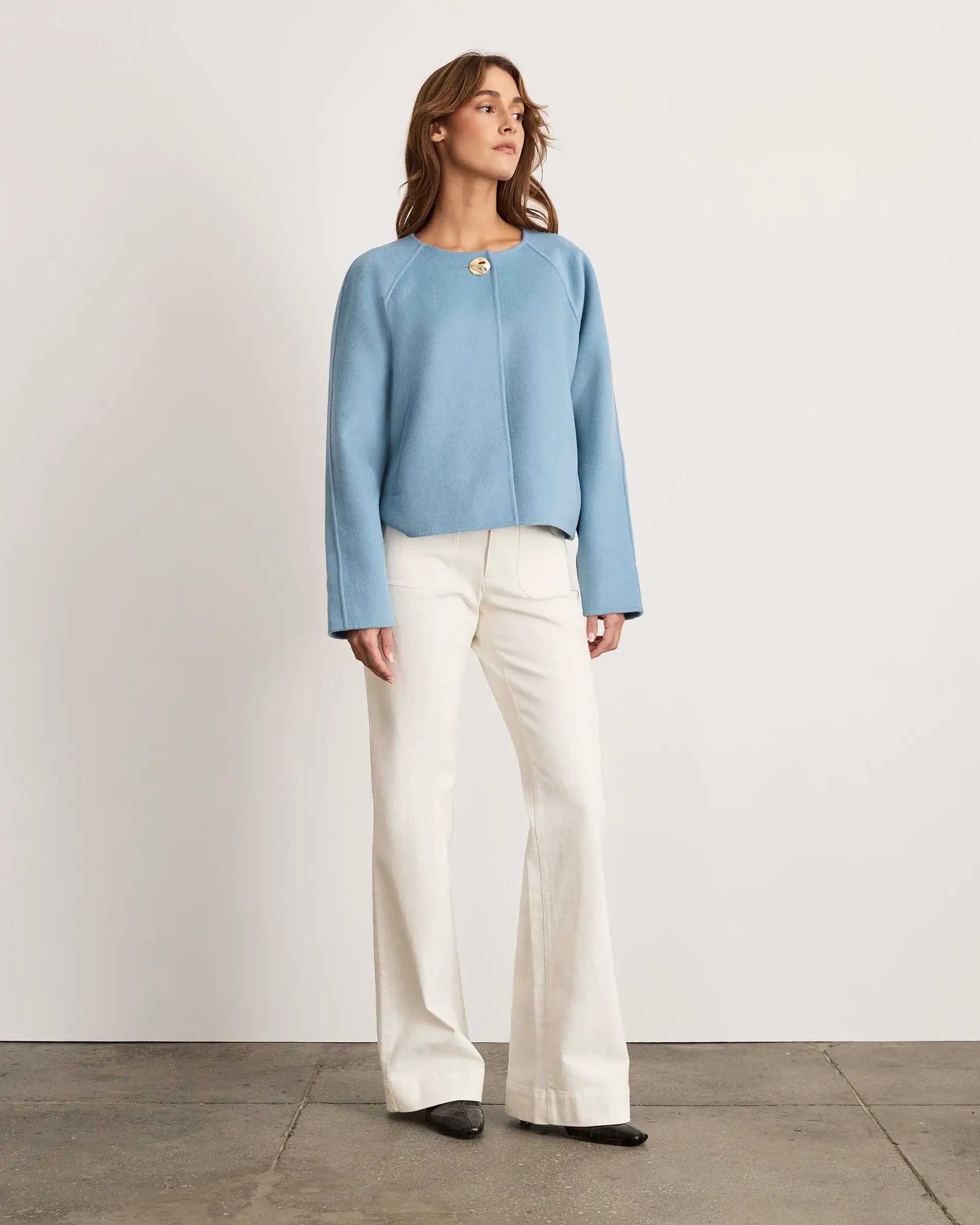 Featuring thoughtful details throughout, from the custom gold button and feminine crew neck to the angled side pockets, Micah lends a sophisticated yet approachable ease to everyday dressing.