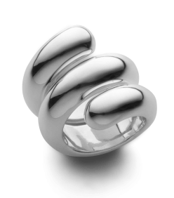 The Uncommon Matters 'Nebula' ring is crafted from silver and features a smooth, oversized sculptural shape that wraps around the finger.