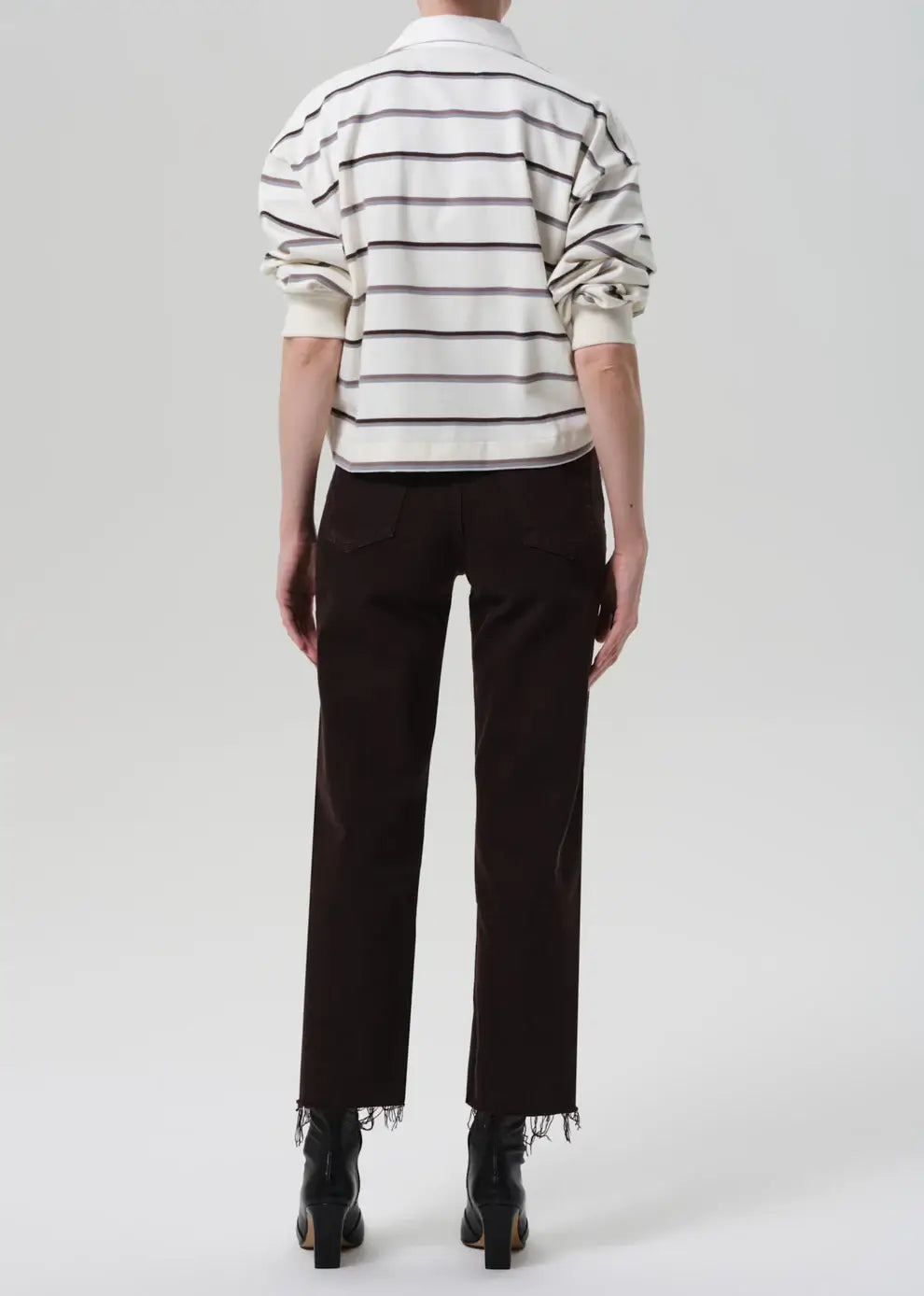 The ‘Palma’ is a modern straight leg with a streamlined, ankle-length cut. Crafted from soft stretch denim with a lightweight feel, it offers flexibility and all-day ease. Carob lends a rich, grounding tone—perfect with tonal layers or crisp white shirting.