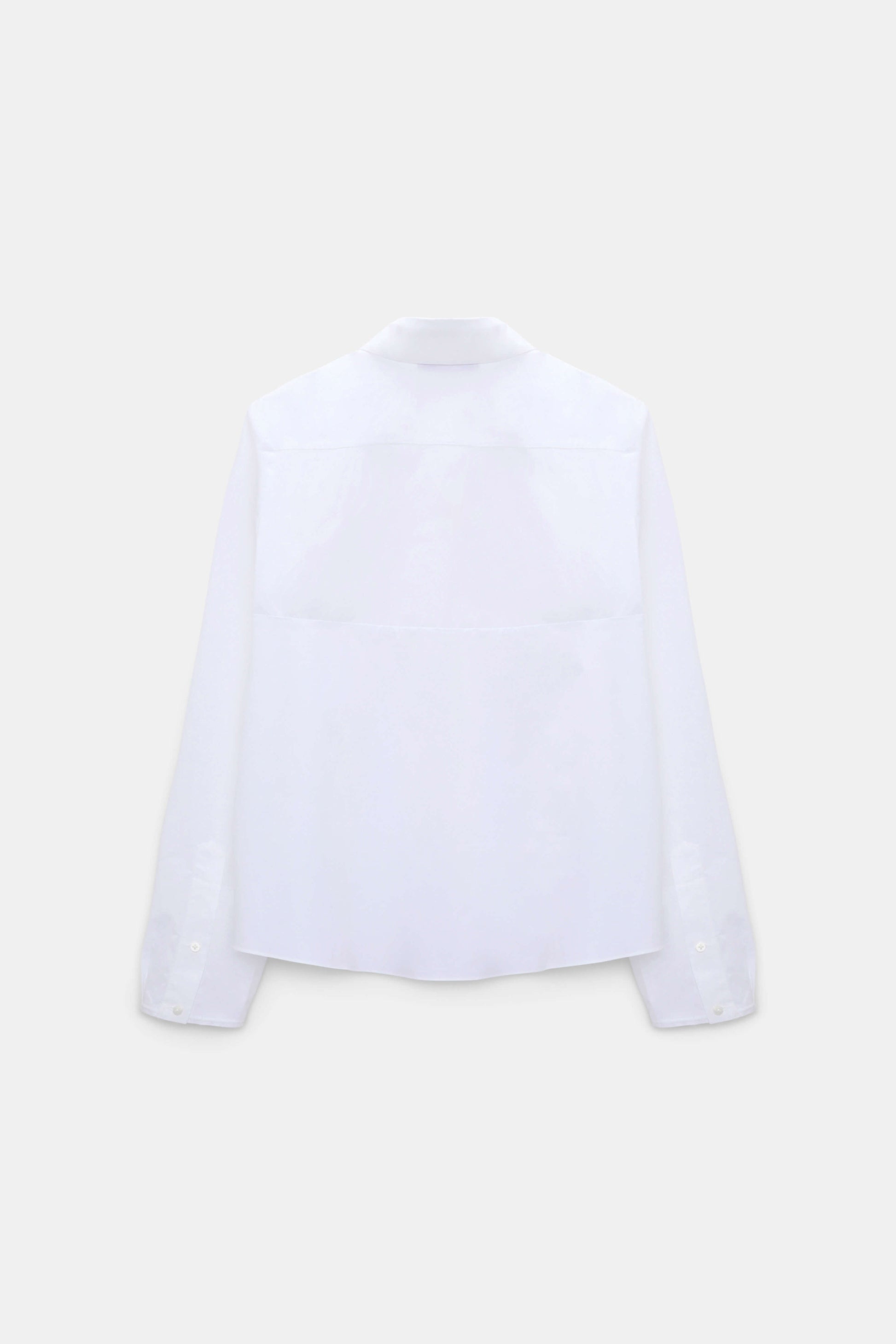 Cotton poplin blouse with a layered collar detail for added dimension and color. Tailored yet easy, designed for versatile styling.