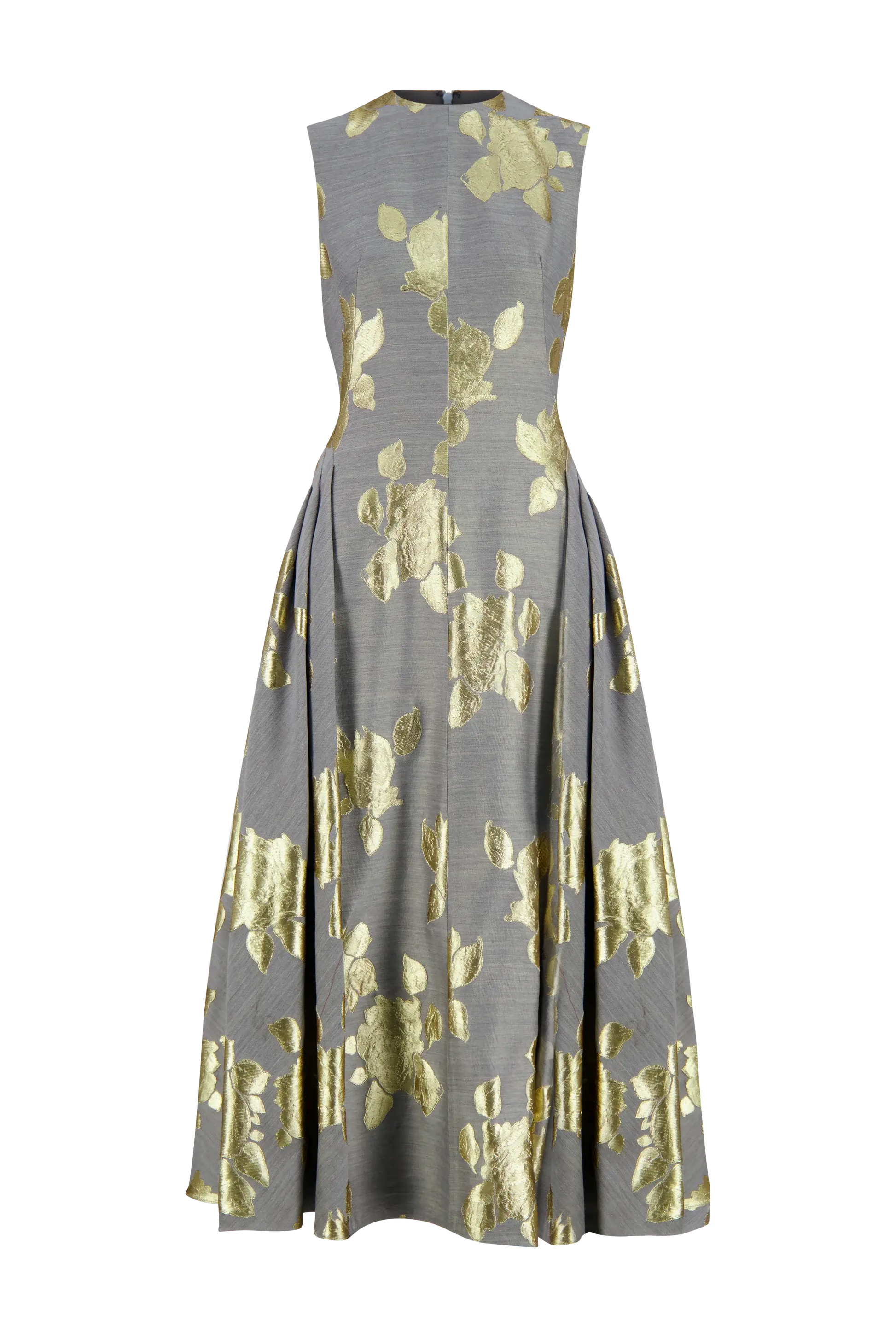 The Sleeveless A Line Dress by Lela Rose is a radiant take on occasion dressing, crafted from this season’s metallic floral fil coupé. Waterfall seam details flow seamlessly into a graceful A-line skirt, creating movement and shine with every step. Effortlessly feminine, it’s designed to flatter while feeling easy and elegant.