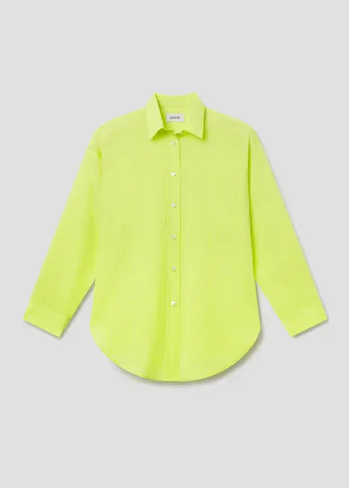 The Sona Shirt blends timeless shirting with modern ease. Designed in lime green stripe, it features a button front closure, elongated sleeves, and a classic point collar for a clean, polished silhouette. Crafted from a naturally soft lightweight cotton blend with a subtle sheen, it holds its shape while maintaining a smooth, silky feel against the skin.