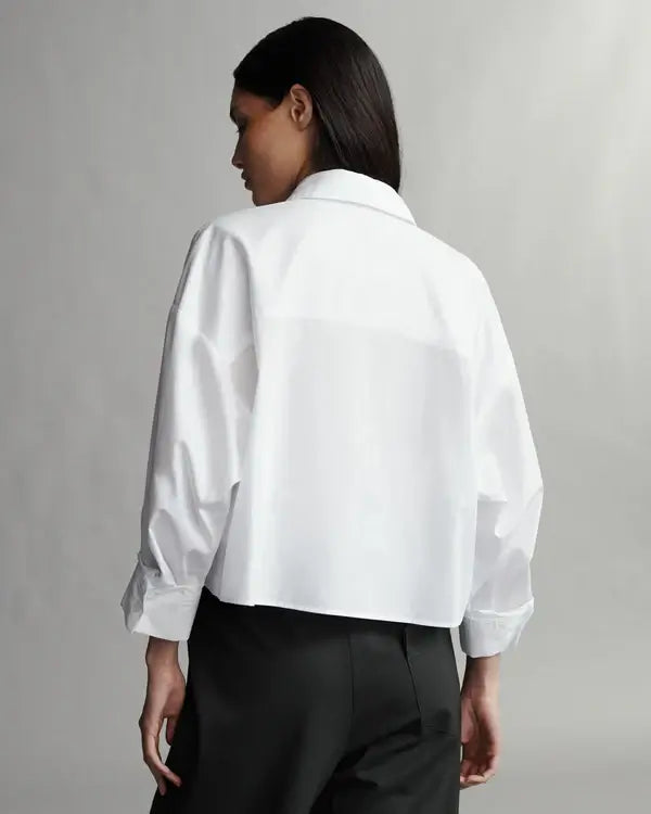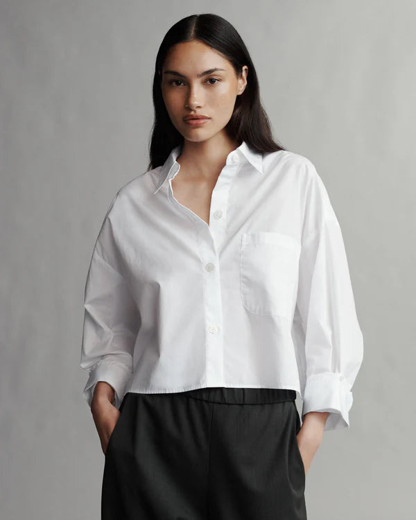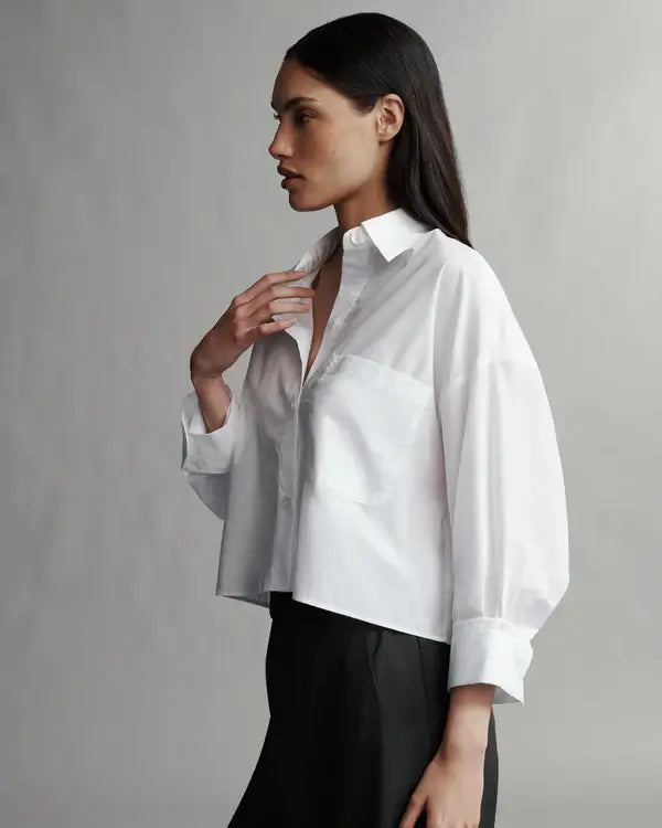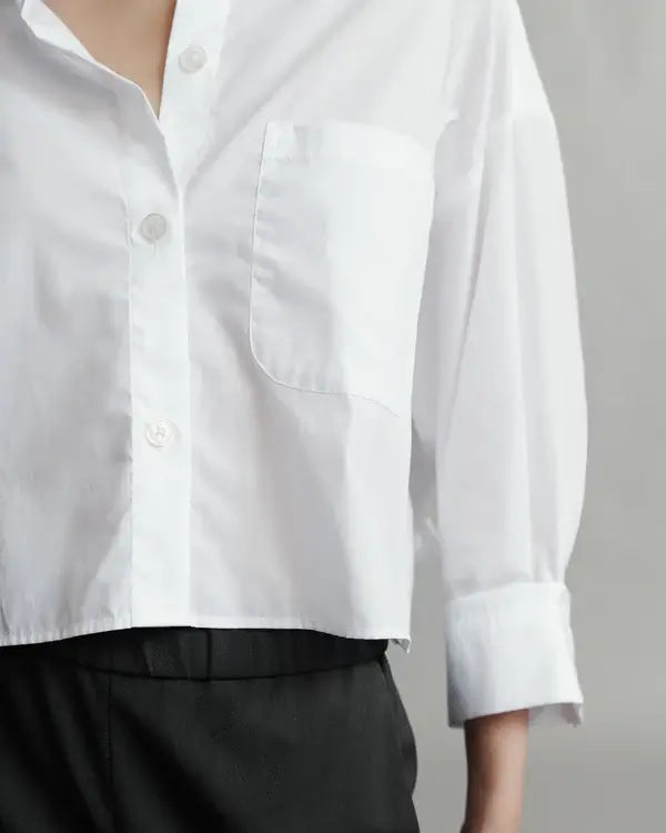 The soon to be ex is cut from superfine cotton. This shirt is cropped perfectly to meet the top of your pants, and features a single pocket.