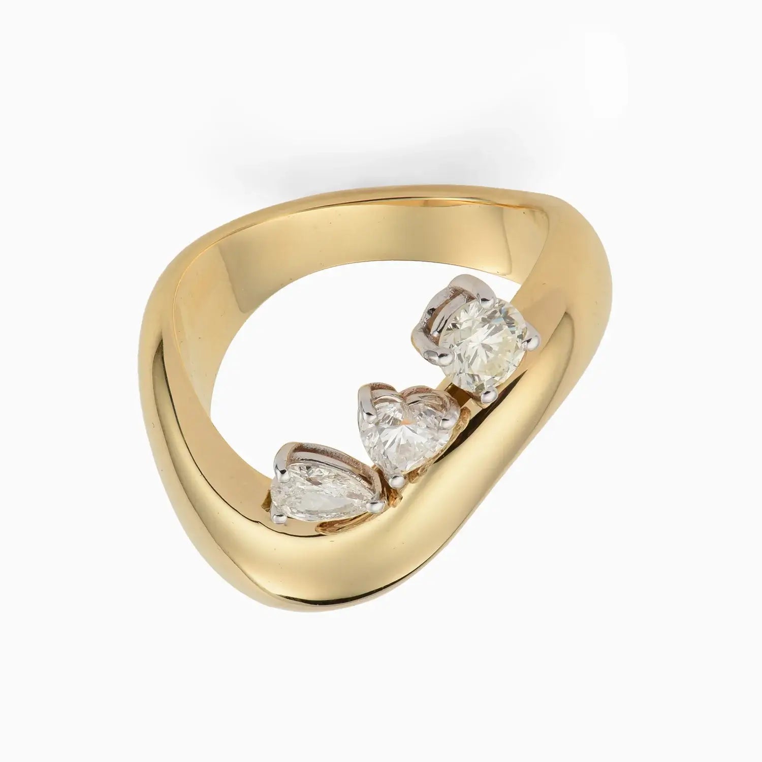 The Sway Swoon Band gives the classic three-stone ring a sweet little upgrade. Its soft romantic curve lets the diamonds gently rock as you move—just enough motion to catch the light and make you swoon.