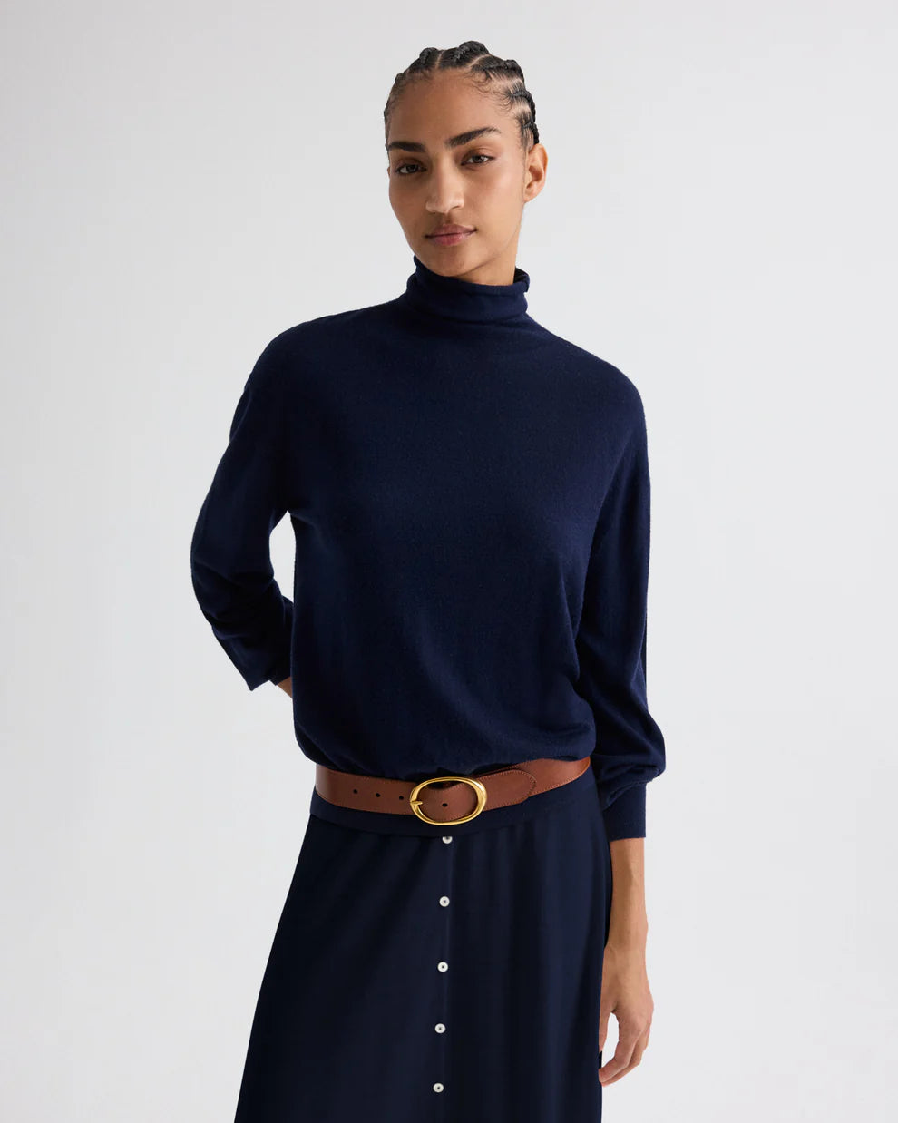 Made in Italy, this wide belt softens and shapes to your body with wear. Finished with a custom antique-gold brass buckle and designed to add definition to dresses, knits, and tailored looks.